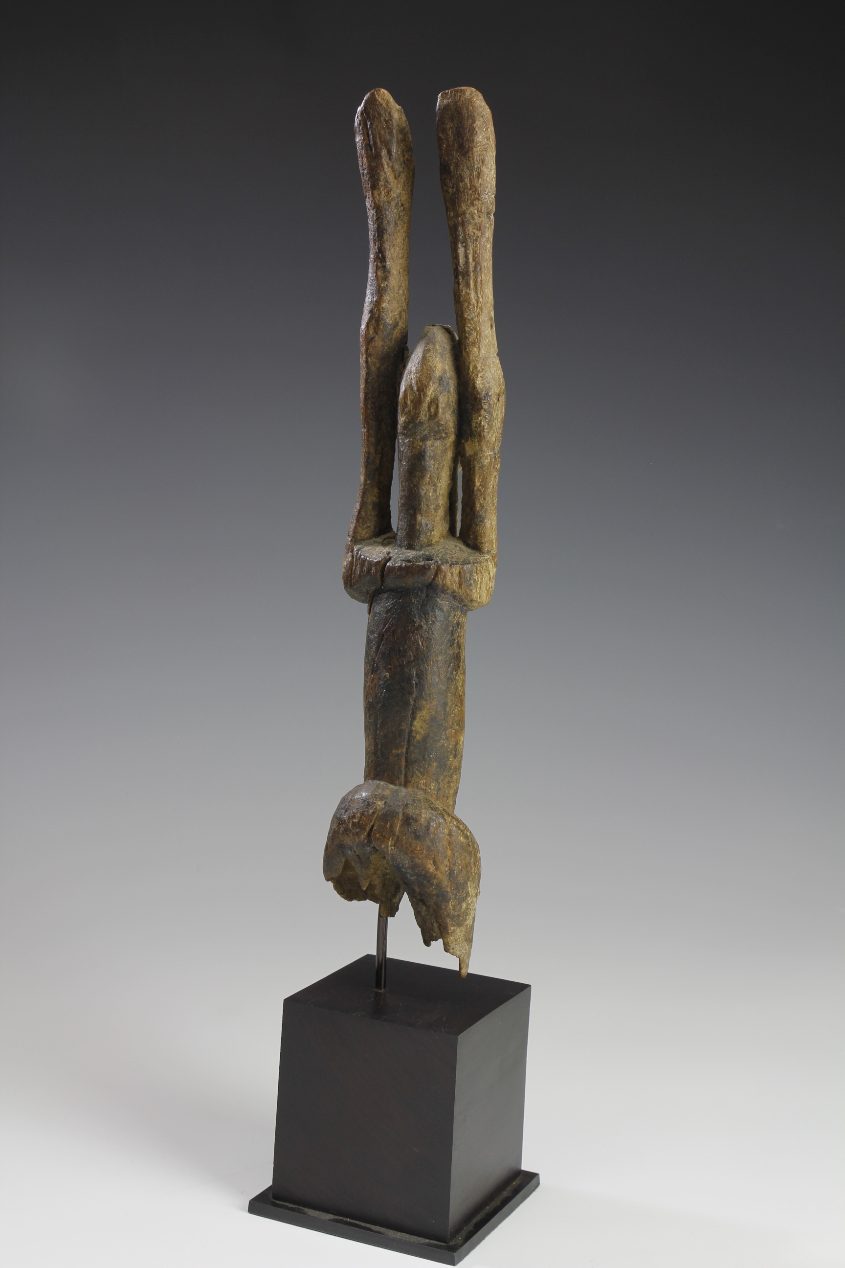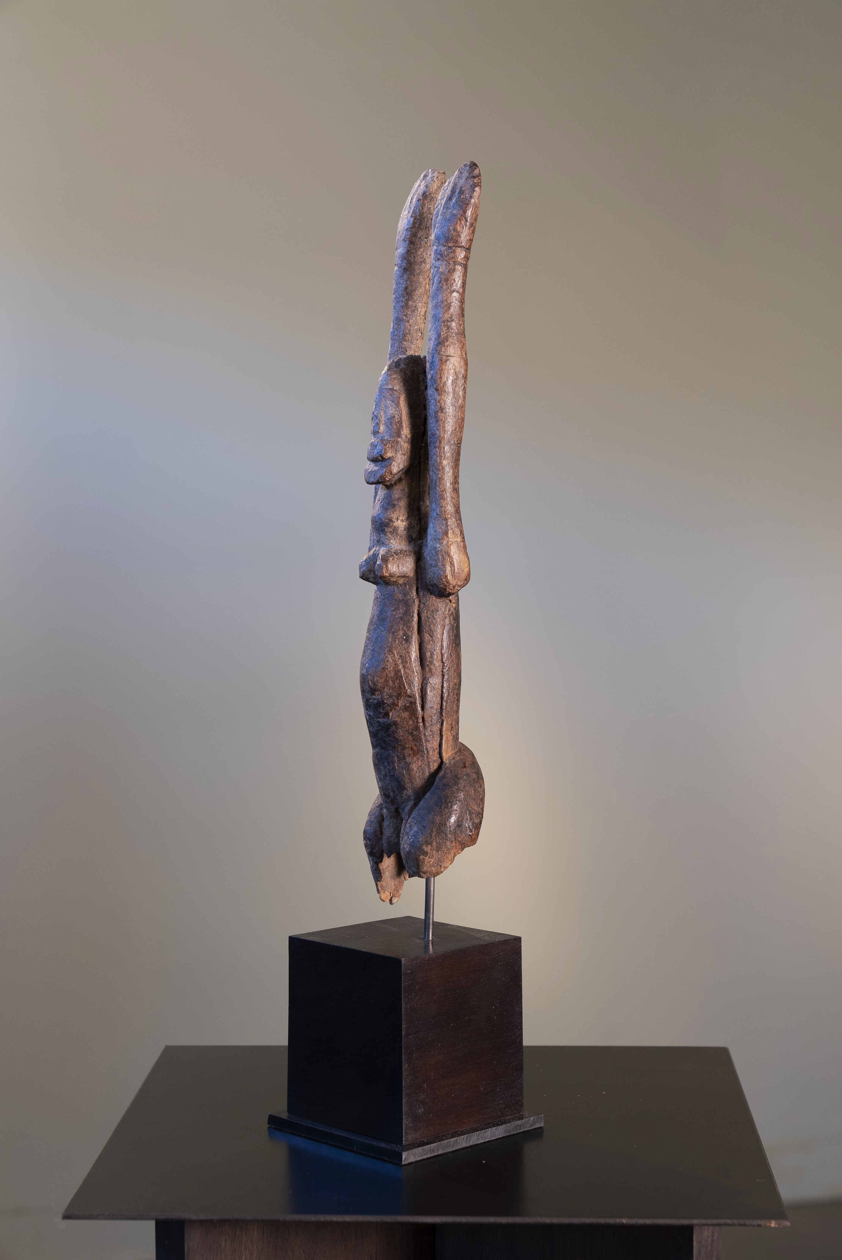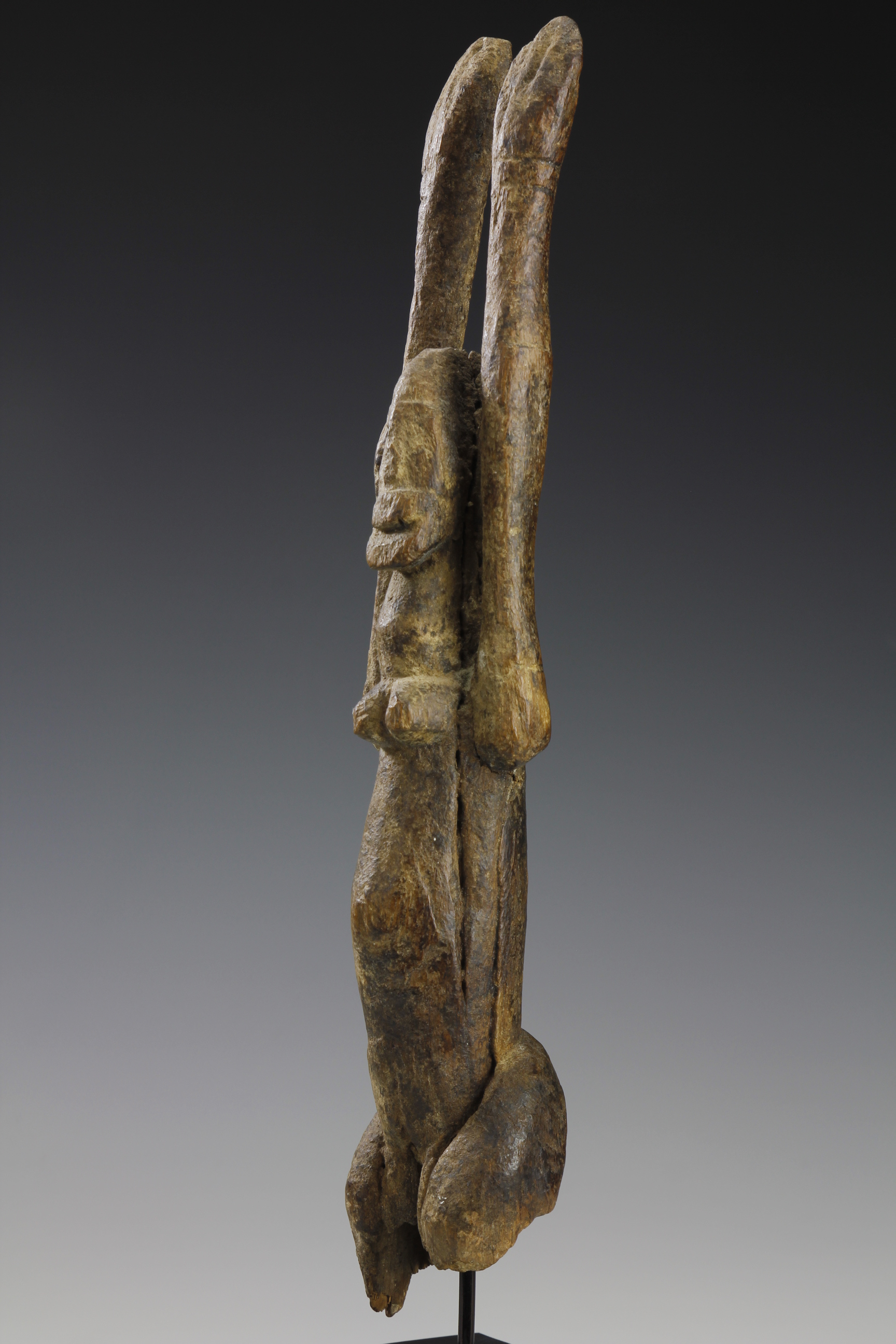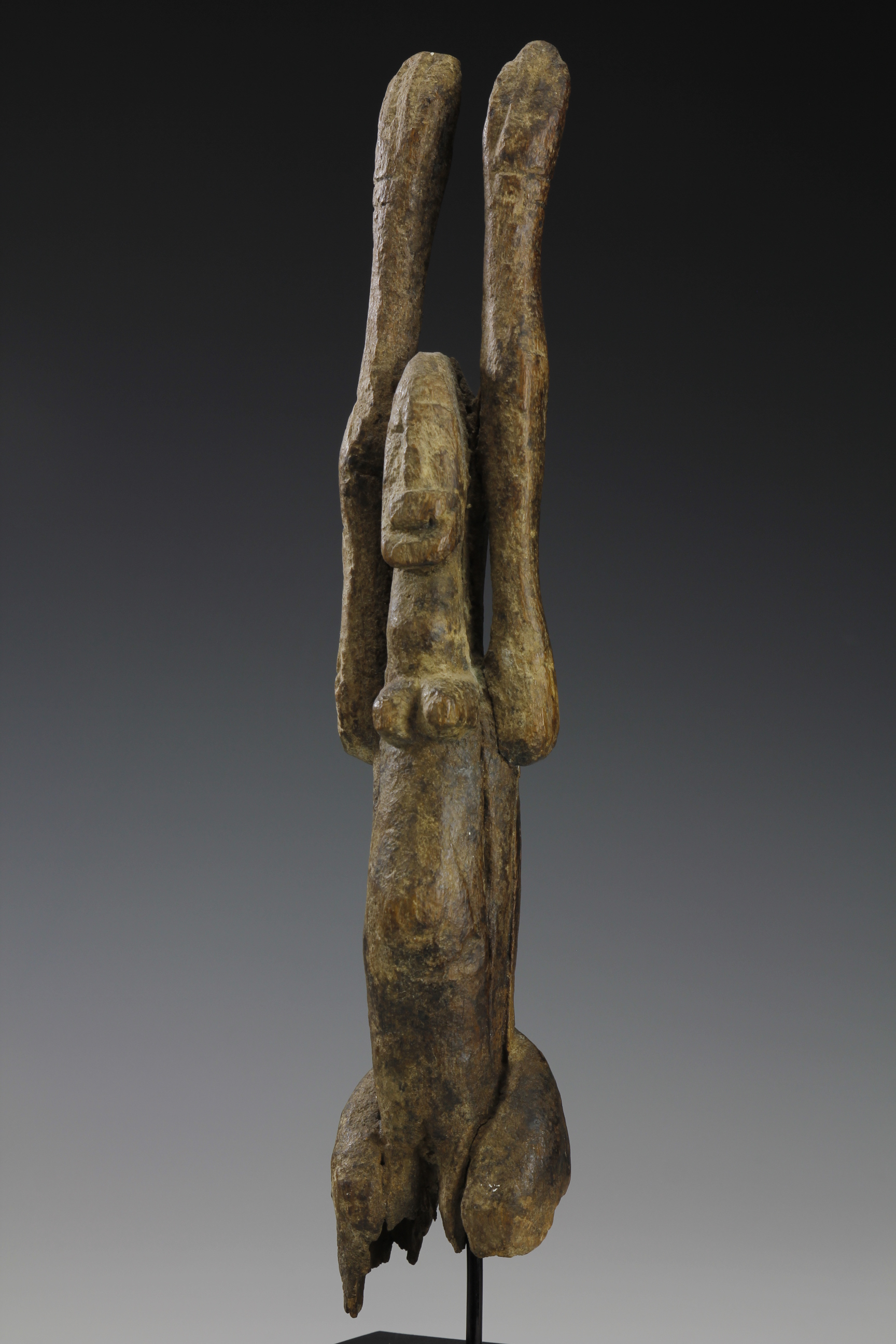With its arms raised to the sky, this fine early Dogon figure displays a characteristic gesture of Dogon Nommo sculptures, which have been said to indicate the communication between the earth and heaven.