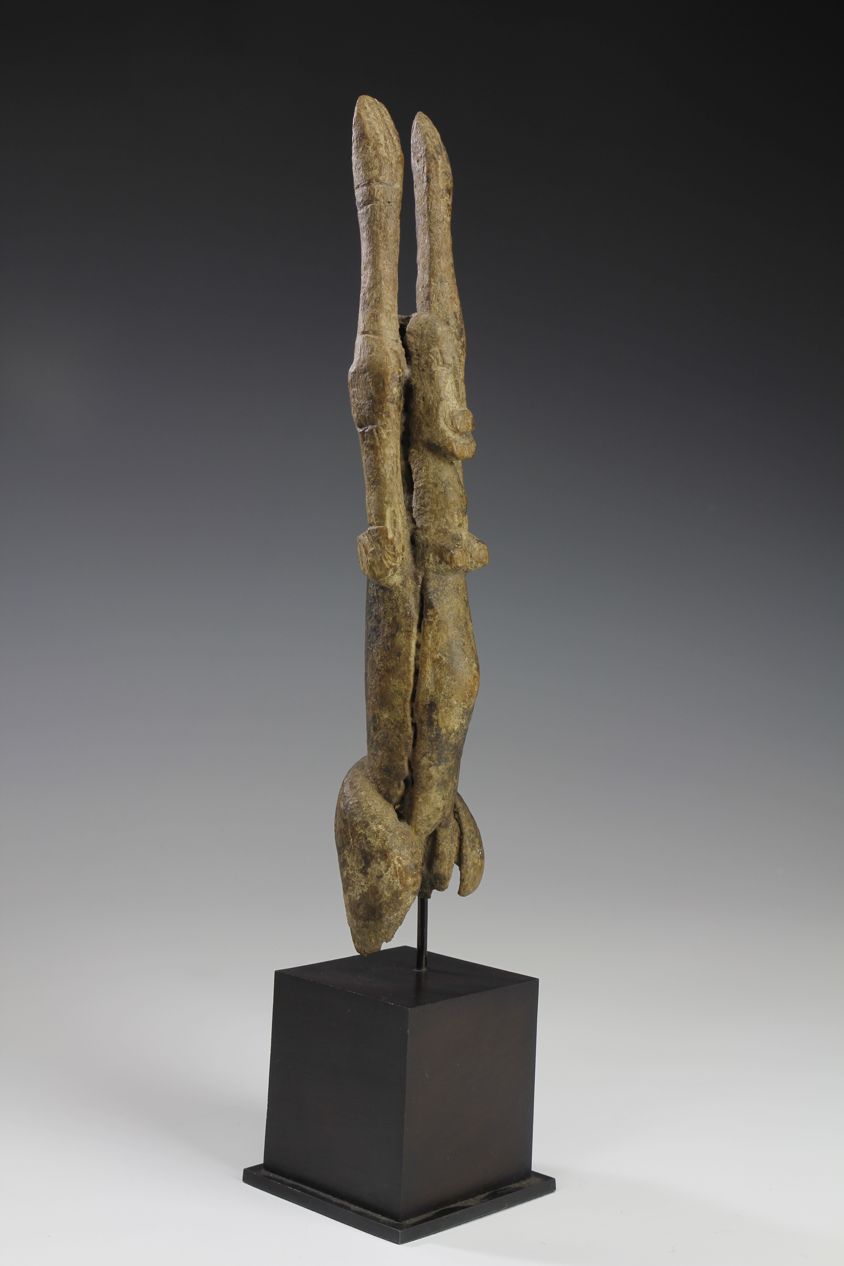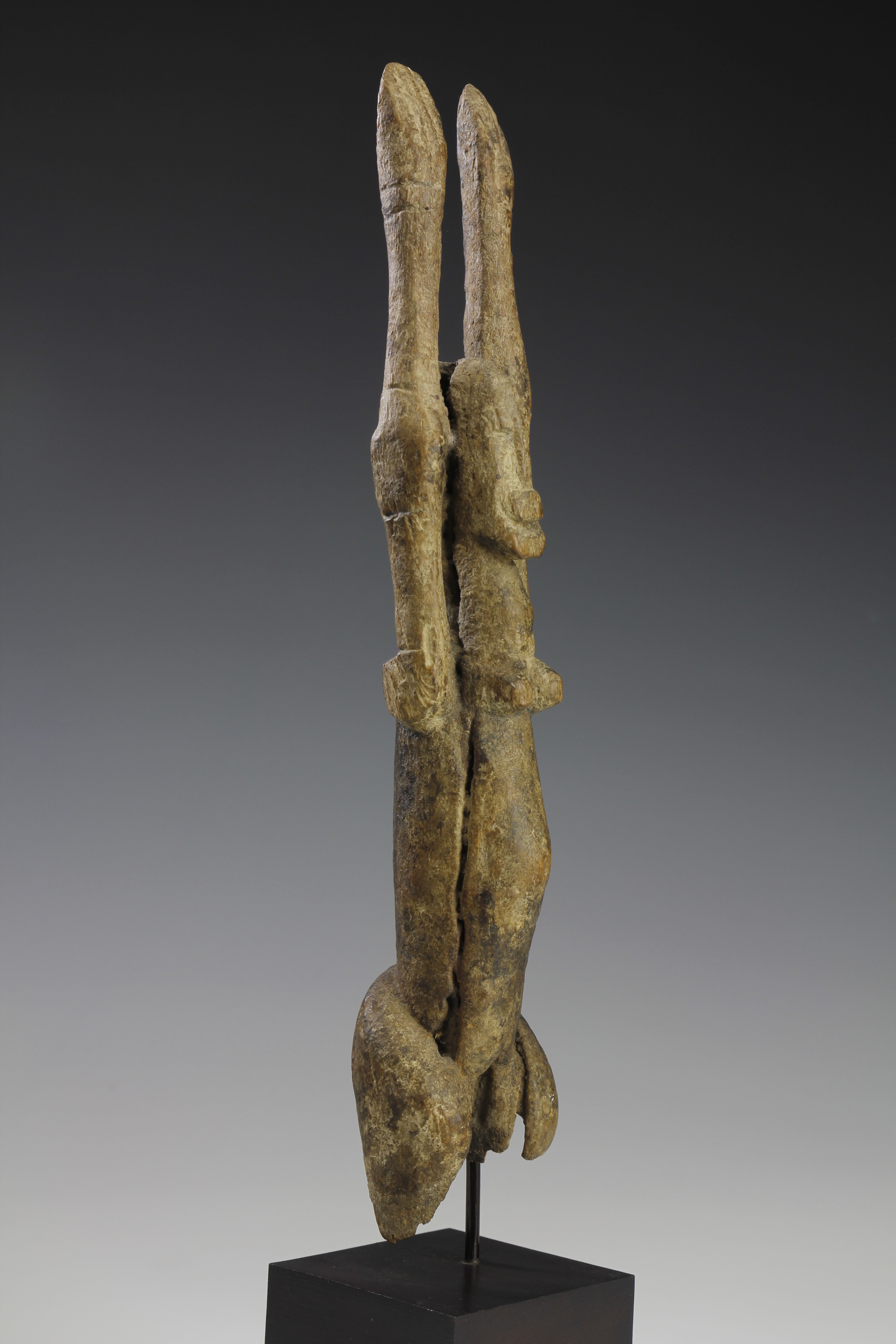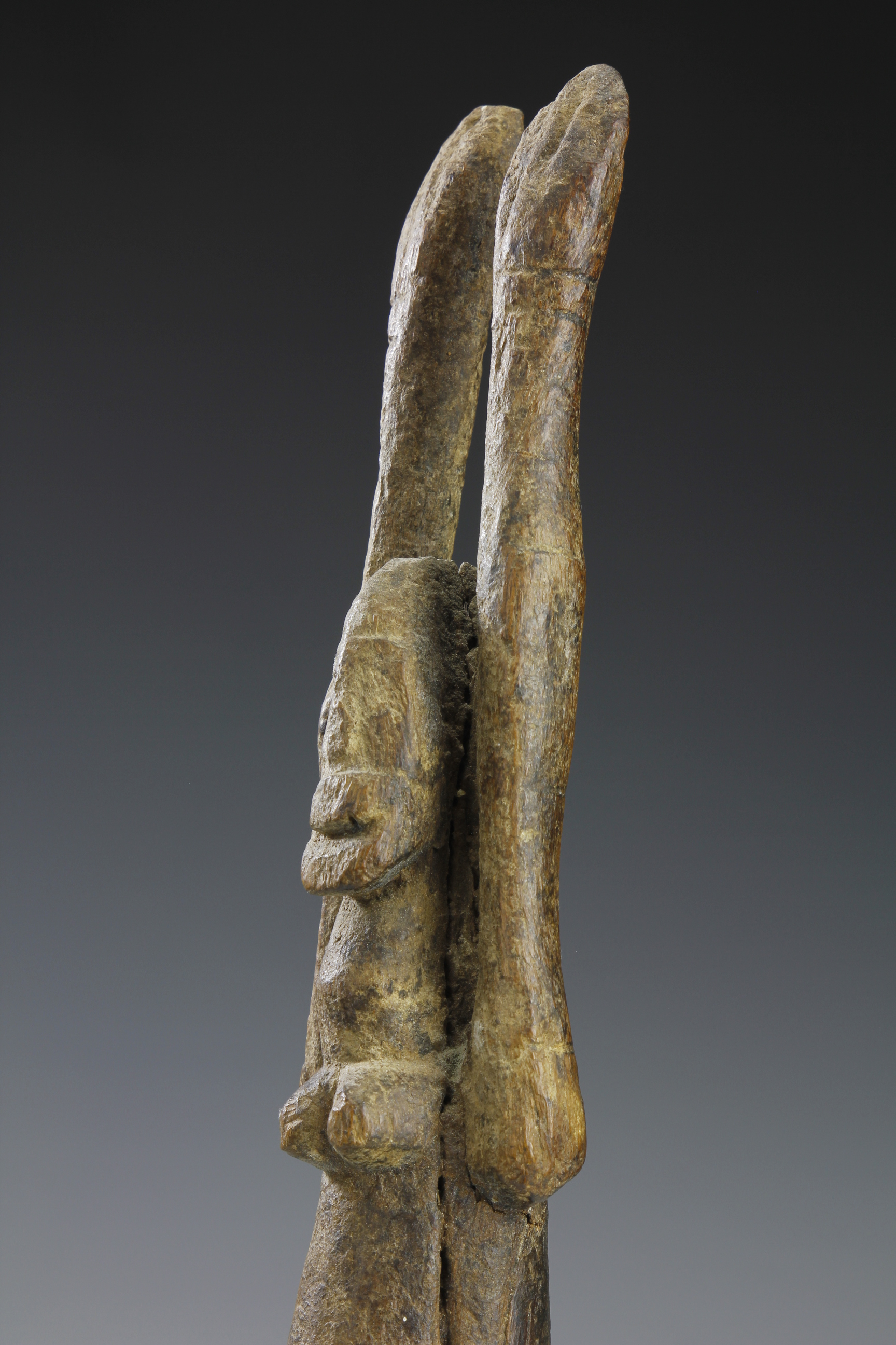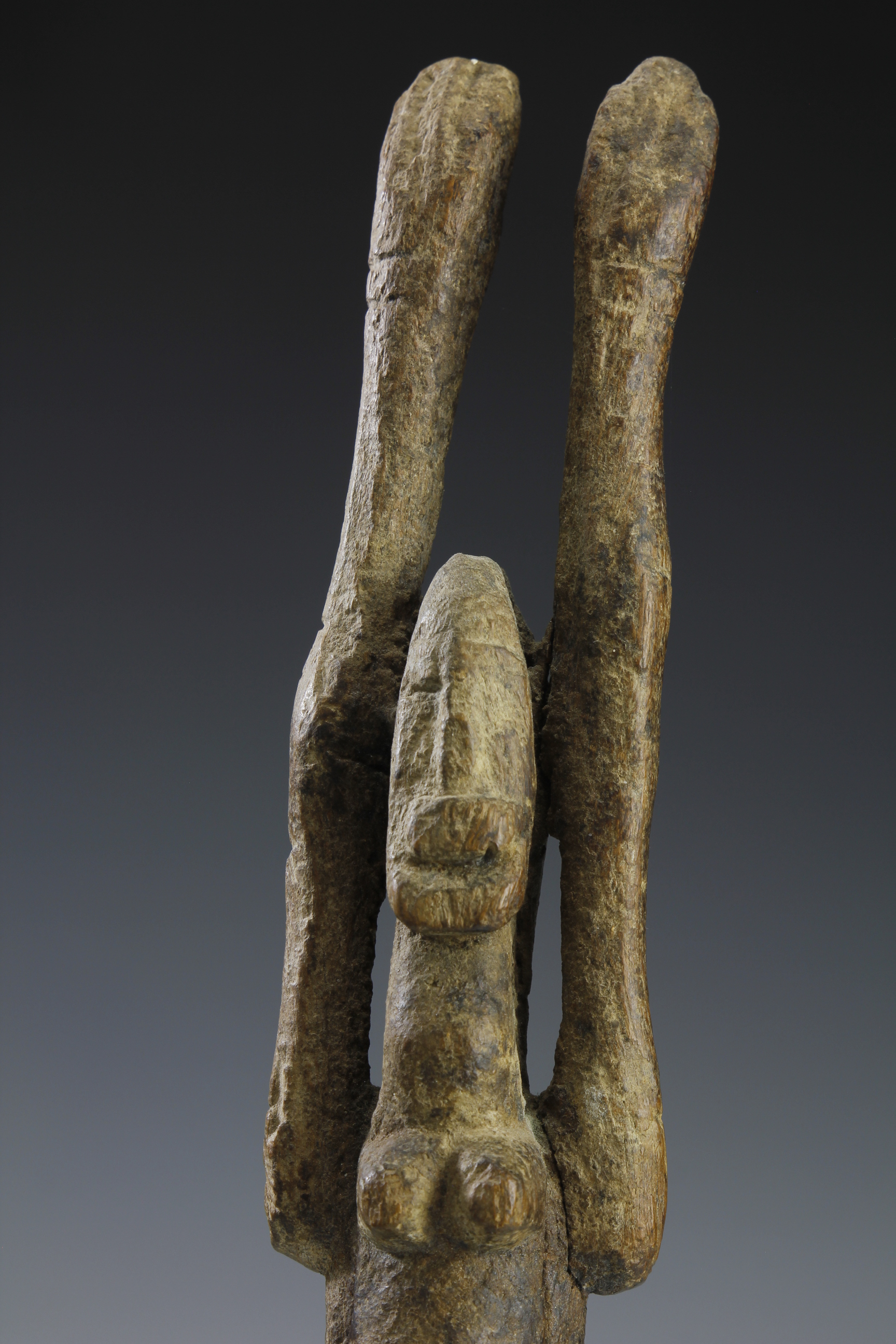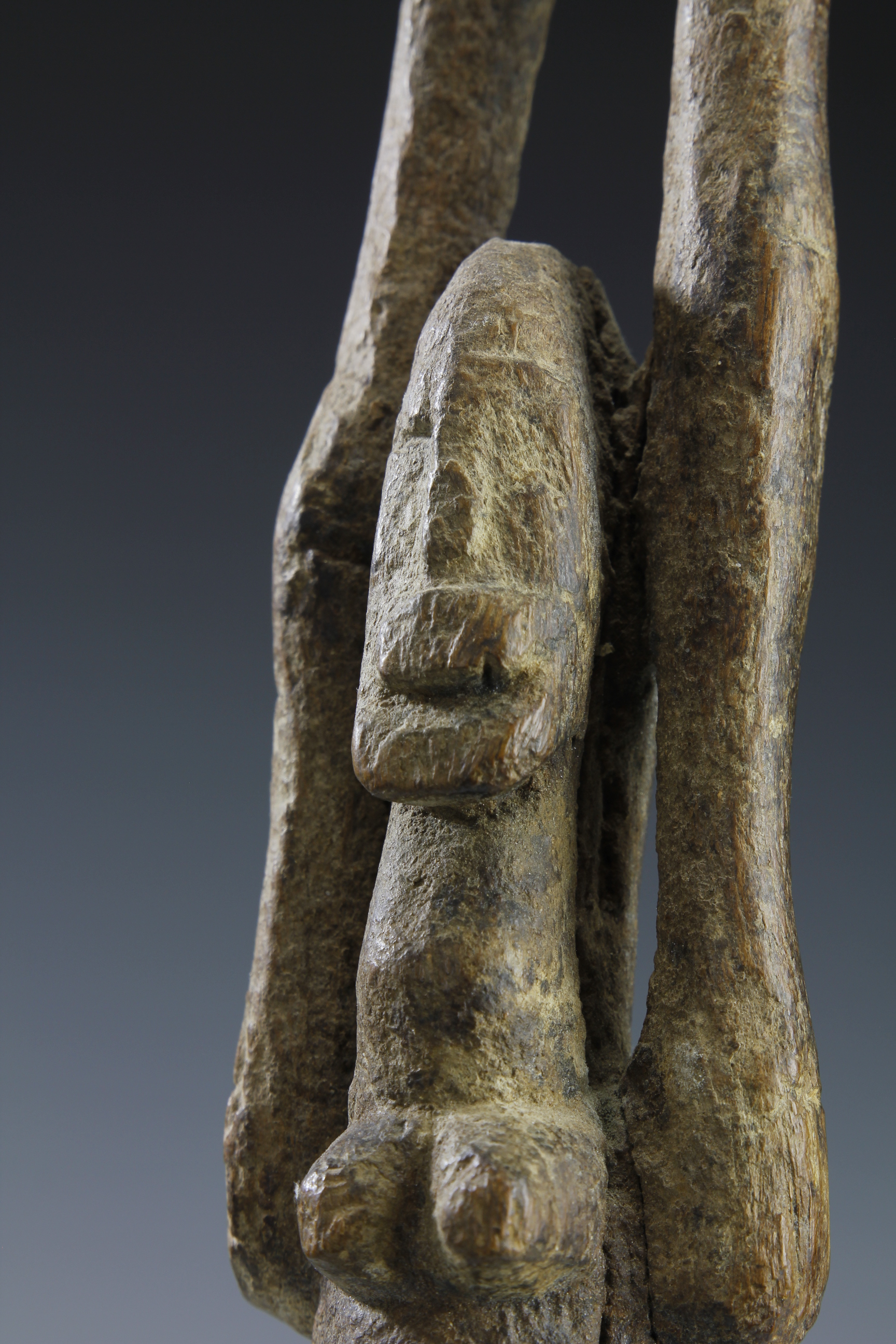 With its arms raised to the sky, this fine early Dogon figure displays a characteristic gesture of Dogon Nommo sculptures, which have been said to indicate the communication between the earth and heaven.