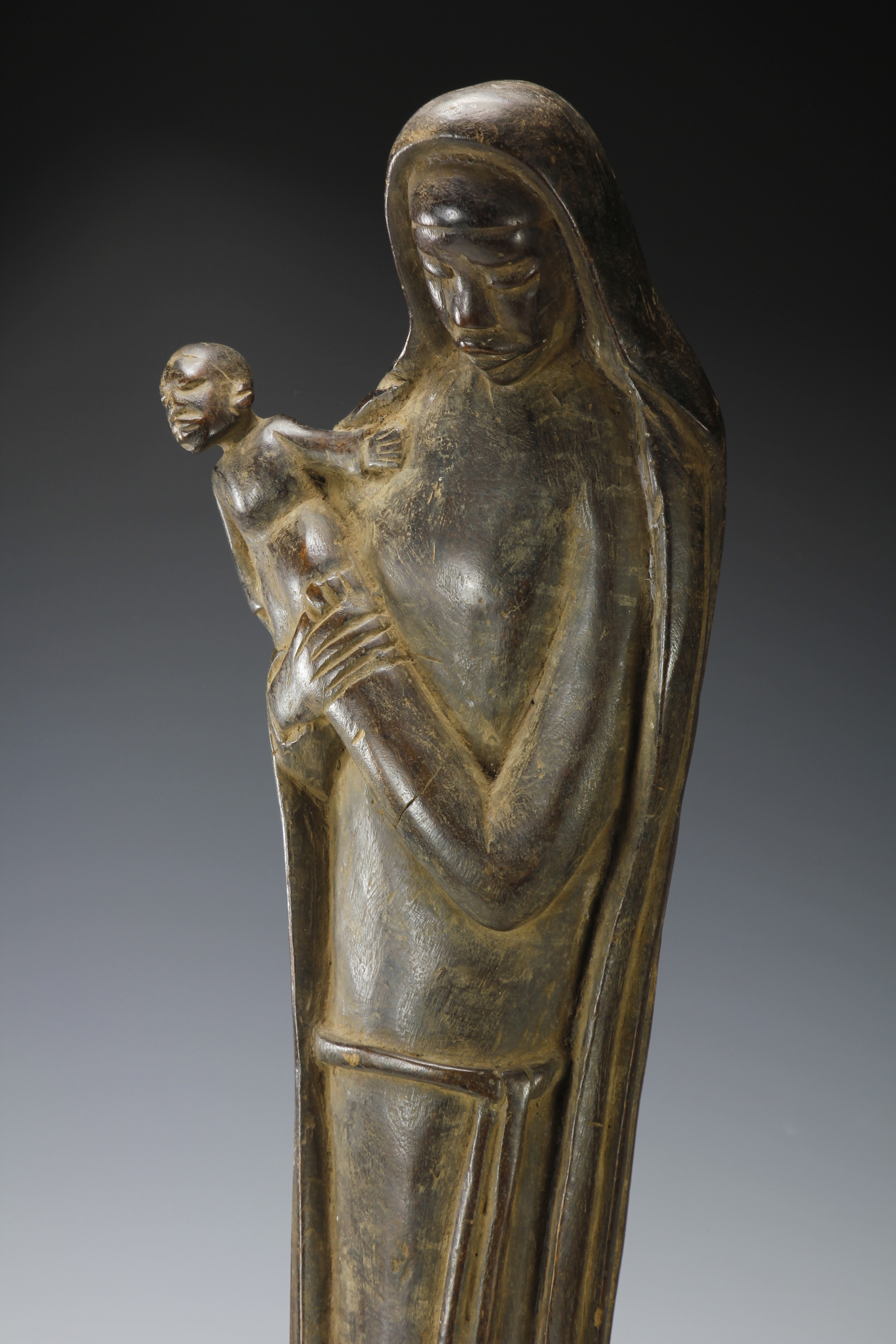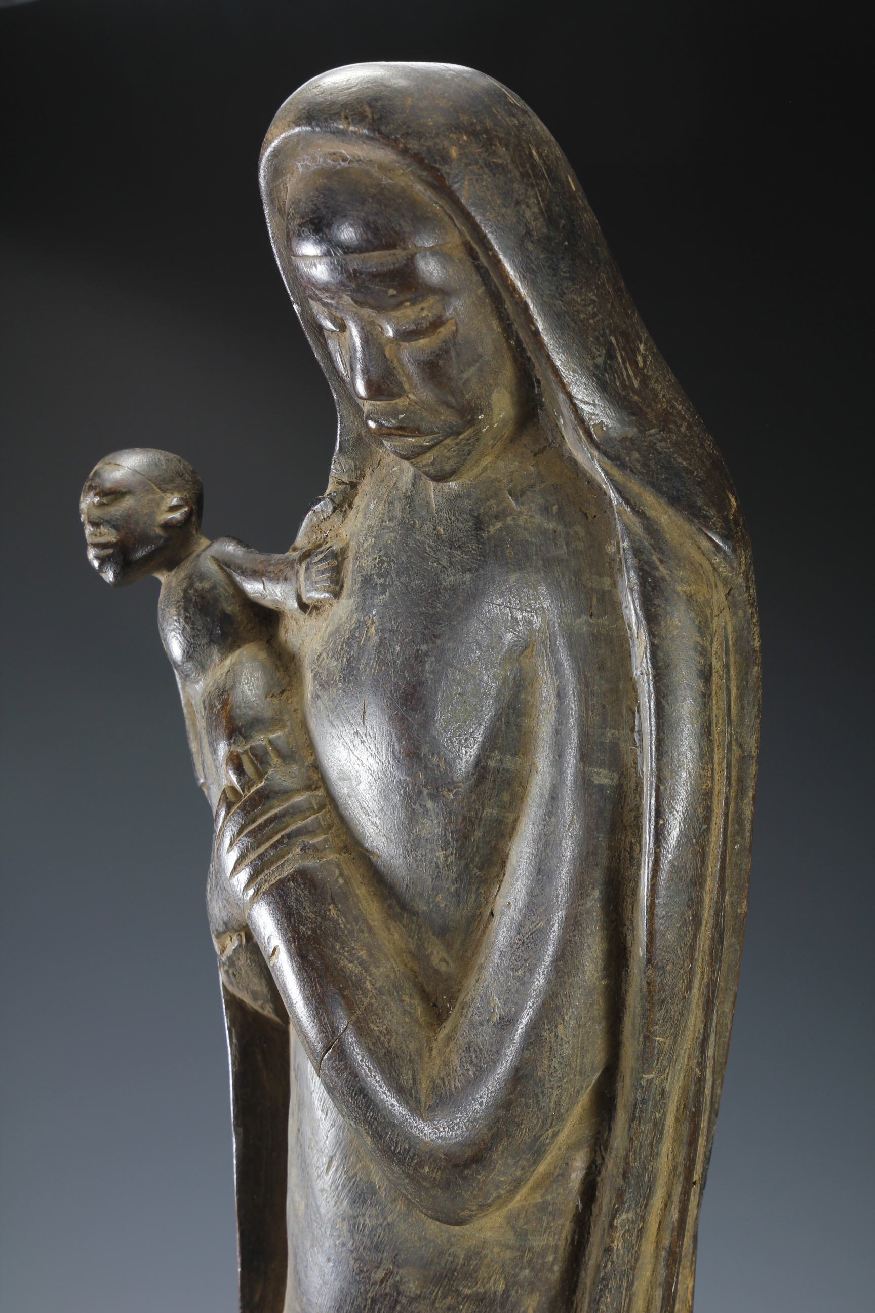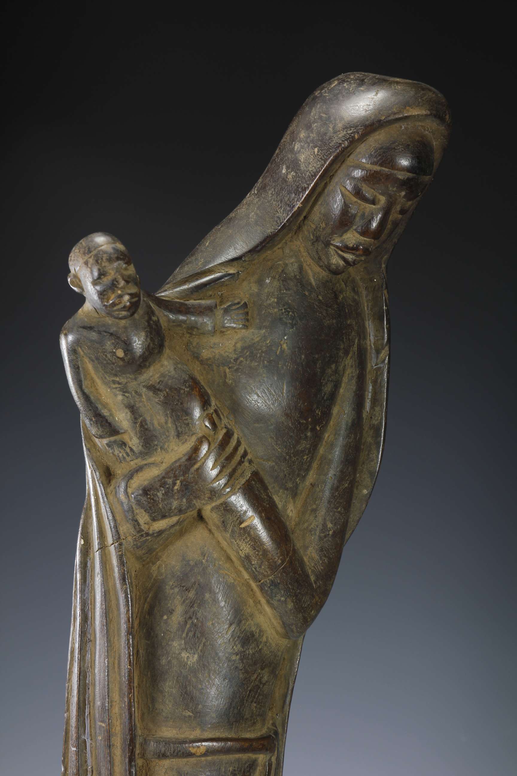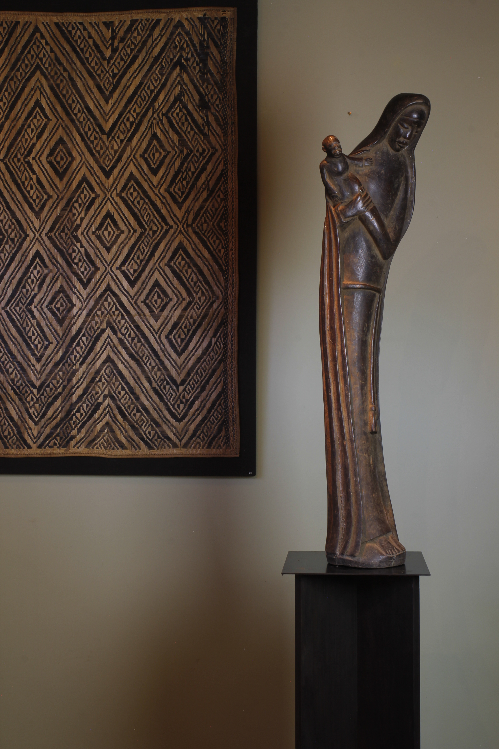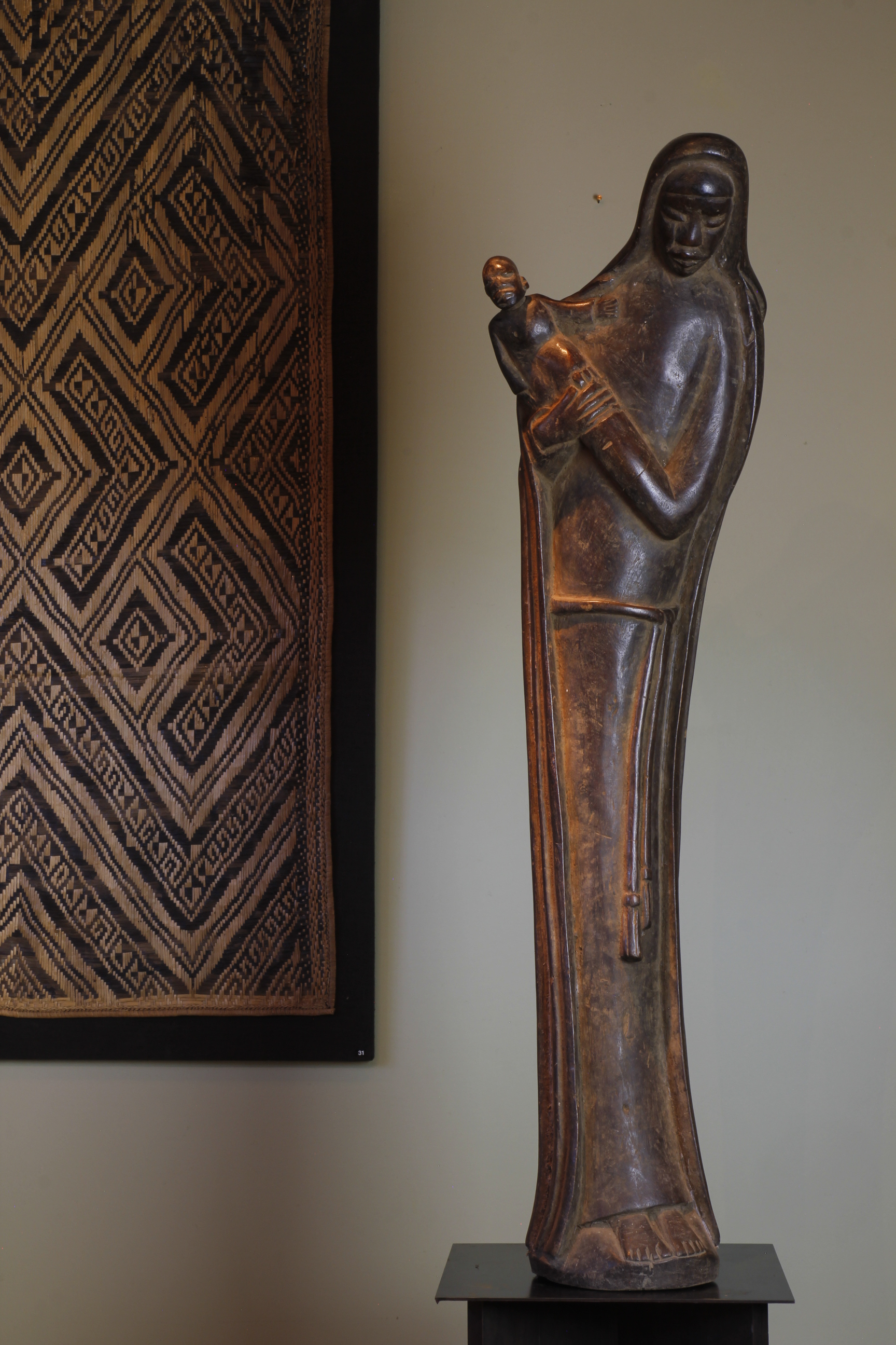 A beautifully sculptured piece of the Madonna and Child, Makonde, Tanzania. Lovely proportions, with a slightly leaning elongated body, note how the Madonna's supporting arm joins the child in one continuous movement. The surface has a deep worn glossy patina, specially around the parts where it has been touched. Such pieces where commissioned and kept in traditional households mainly in the southern border region of Tanzania to give spiritual protection to the family.