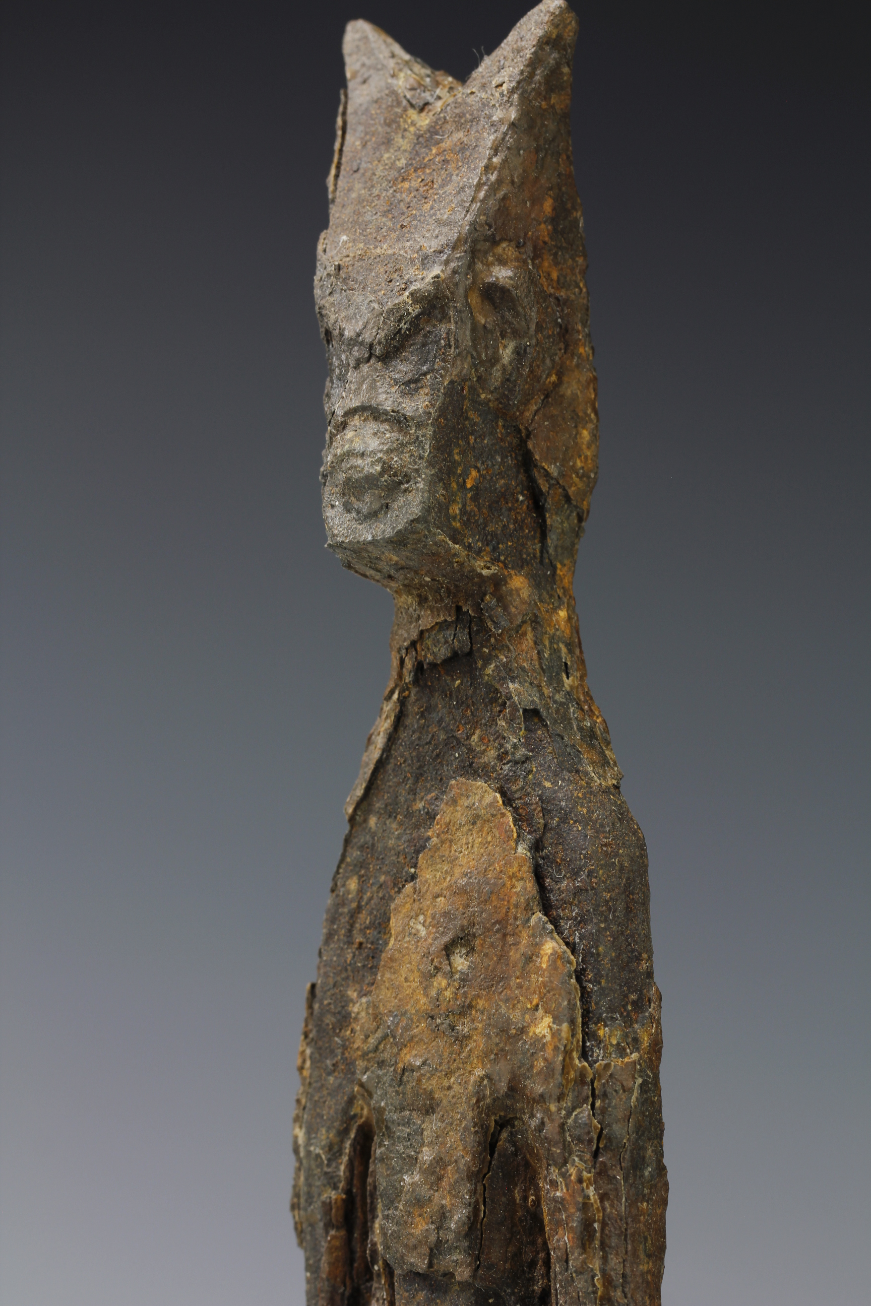 A standing iron figure with a wonderful encrusted and errored surface patina.