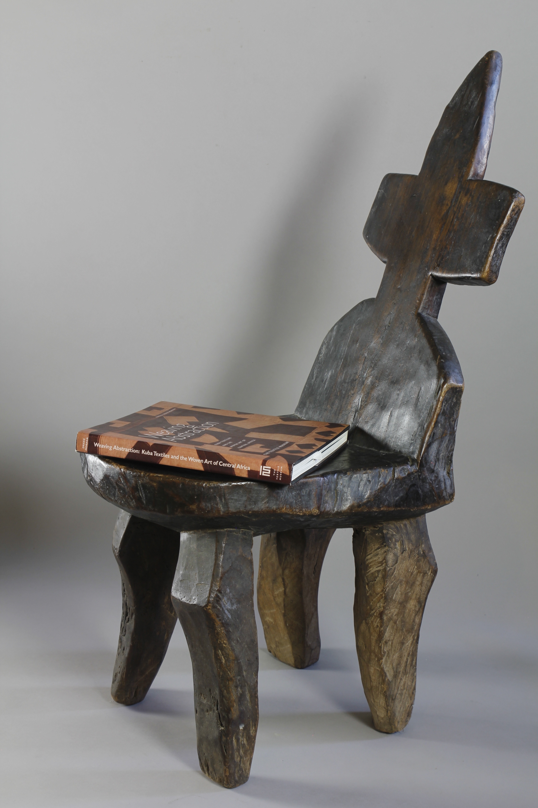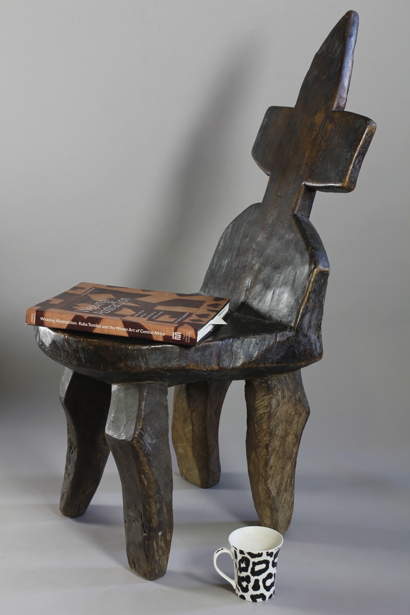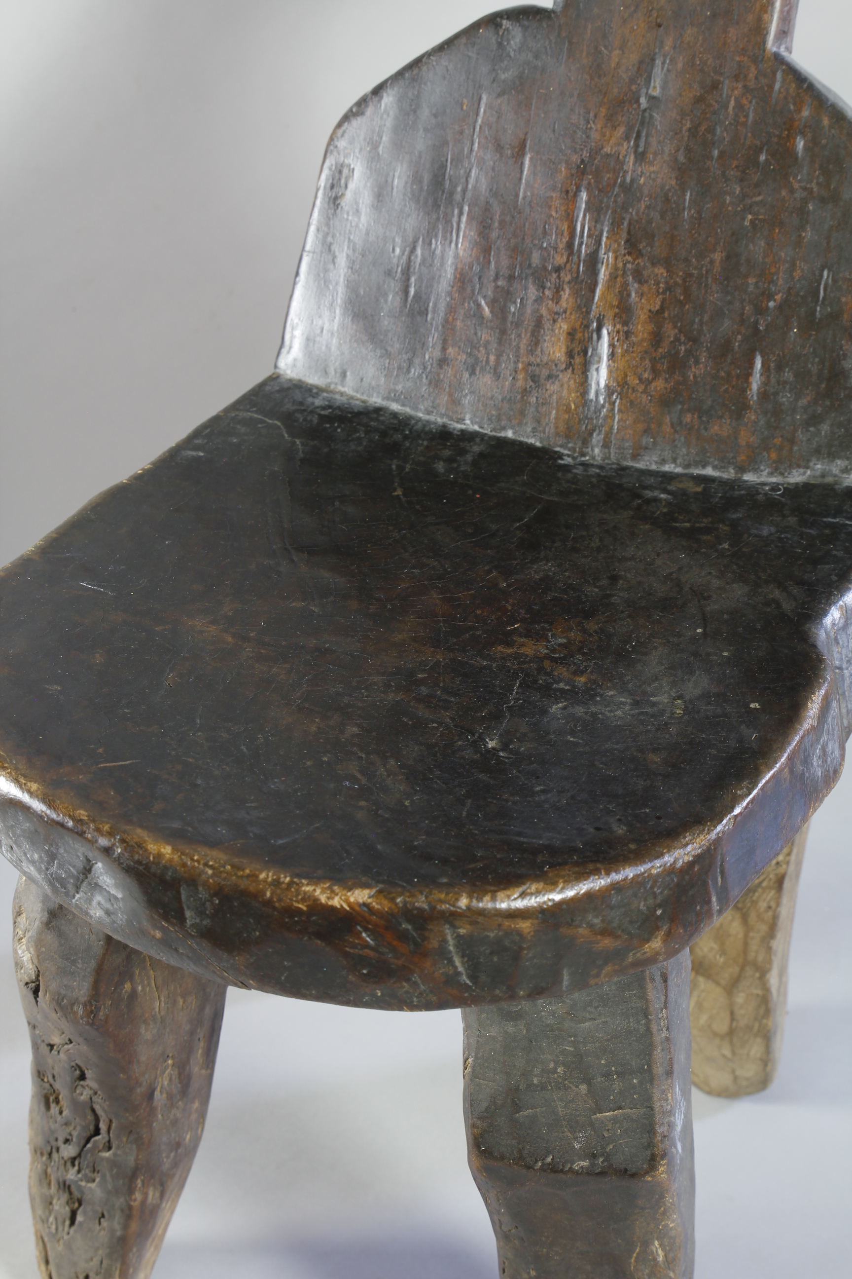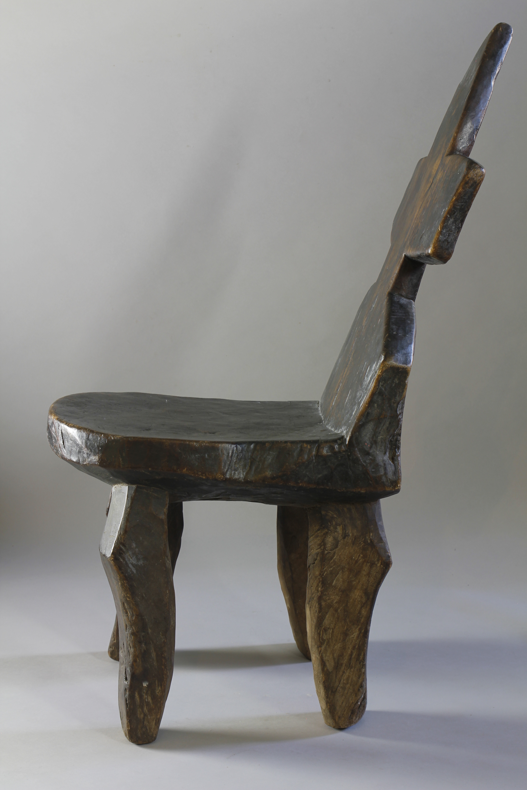 With its tall leaning backrest carved into the shape of a cross, this large four-legged chair from the Jimma region of Ethiopia exhibits an extremely rare form.