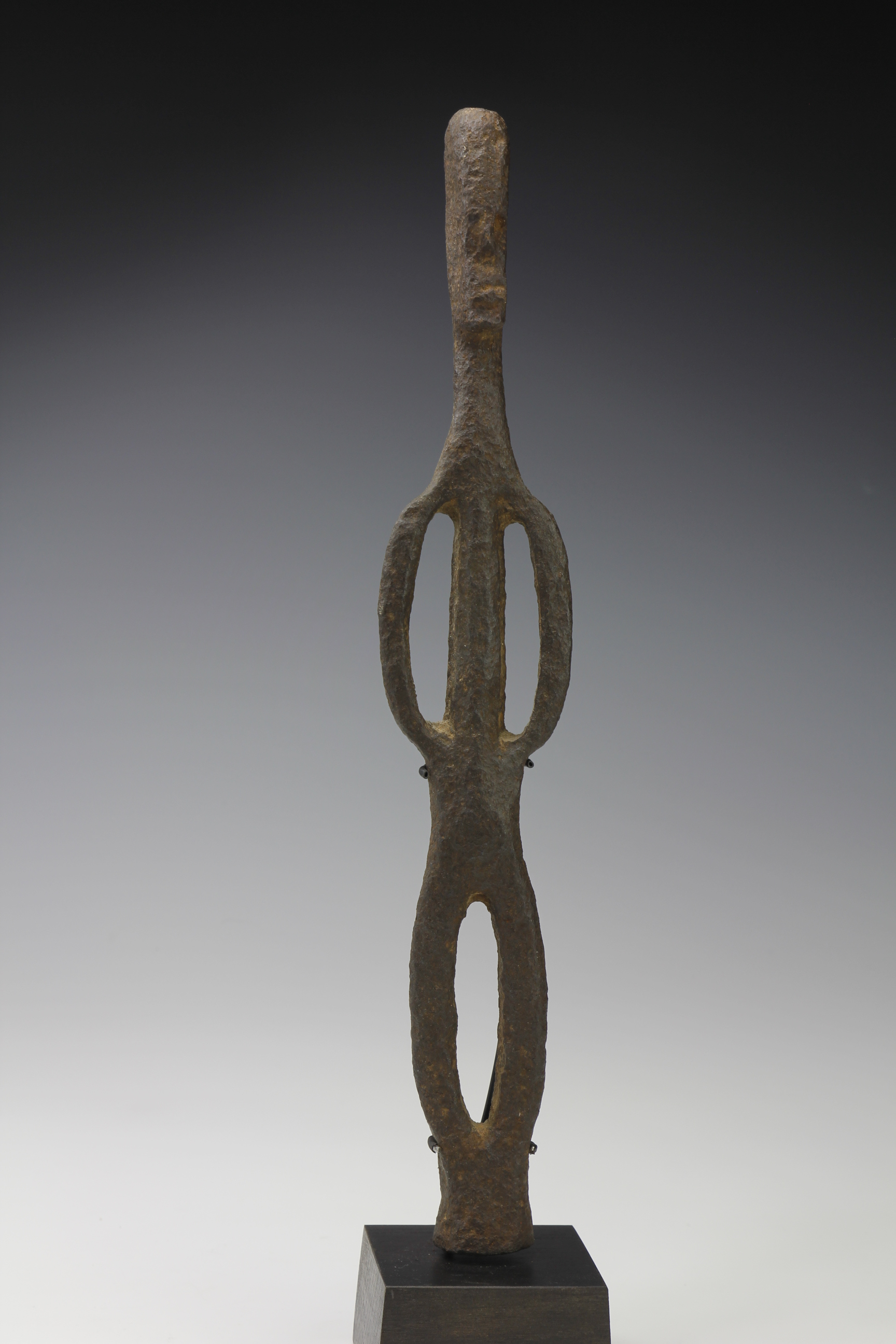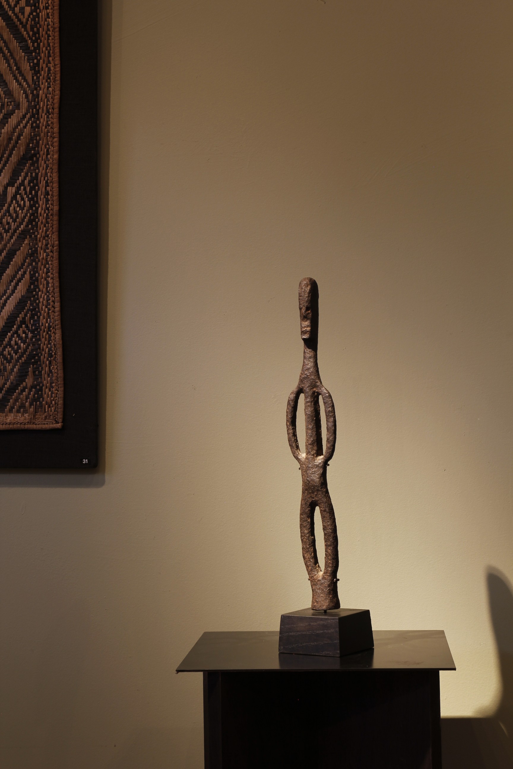 An early forged Dogon iron figure with a deep encrusted patina, likely used as a fetish figure.