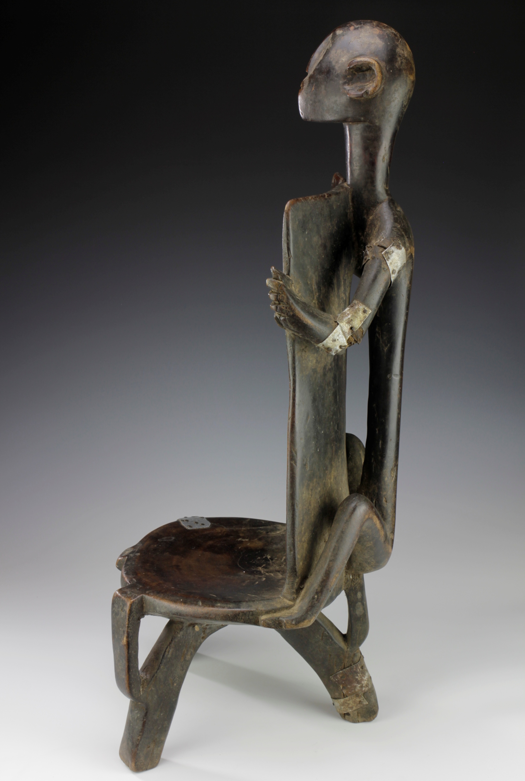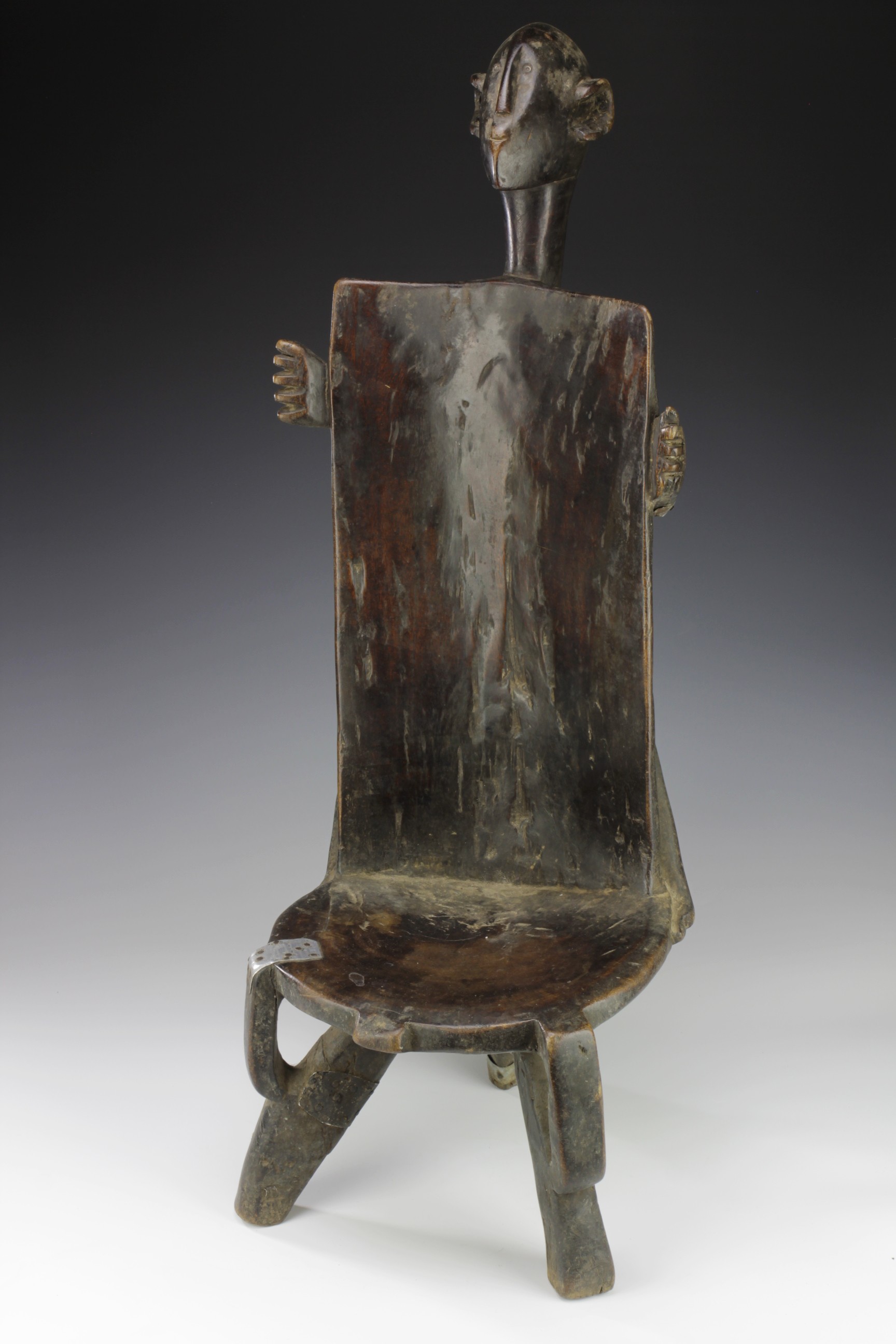 This fine example of a chieftain's throne was kept as an important symbol of rank, power and status by Nyamwezi chiefs of Central and Western Tanzania. The all over surface patina is deep, rich and worn. Traditional restorations appear to the curved legs and to both of the arms.