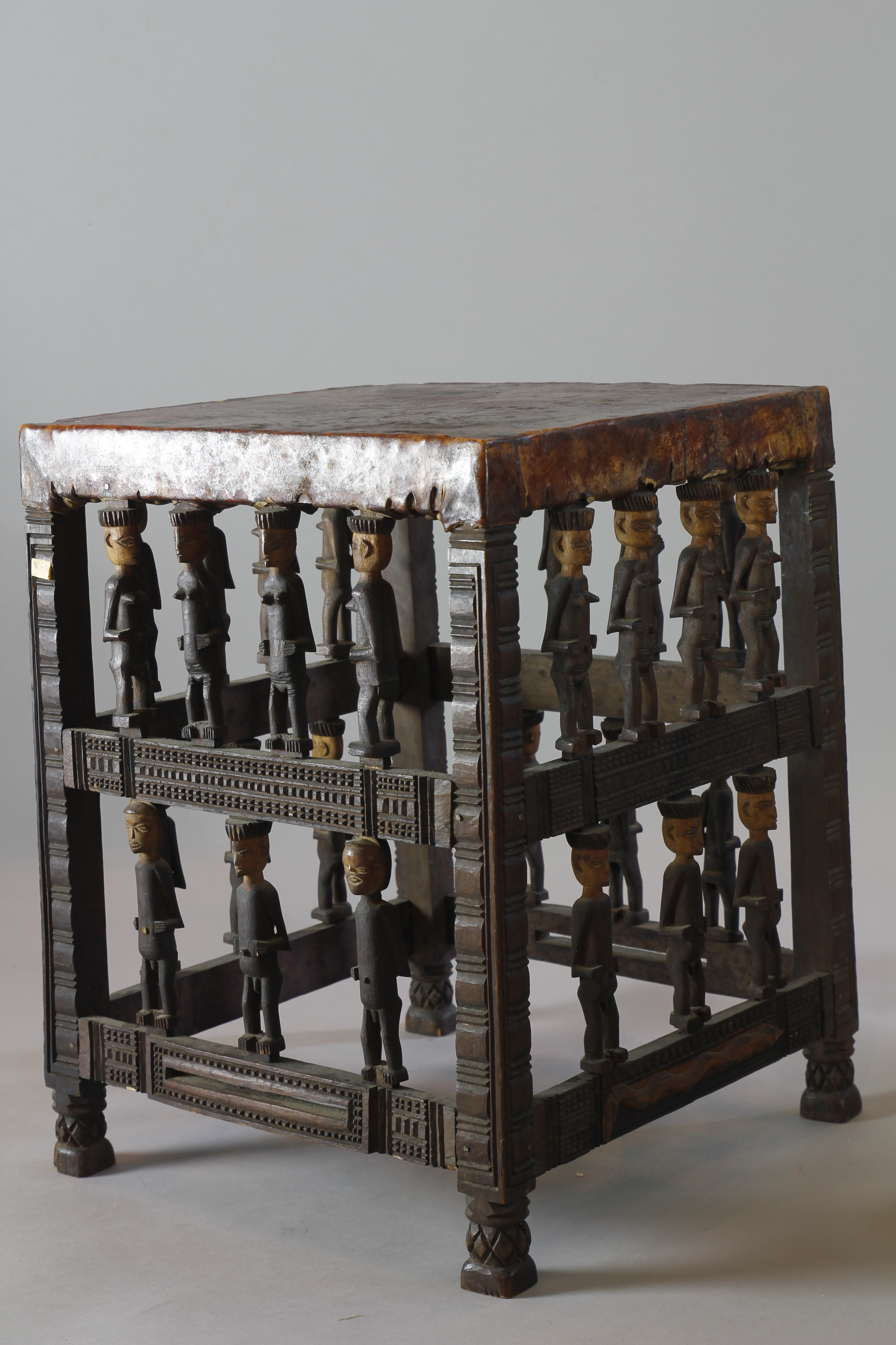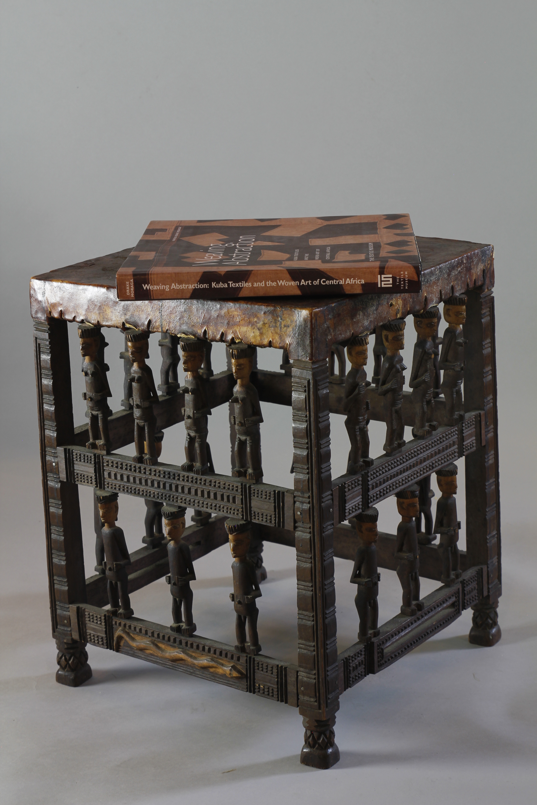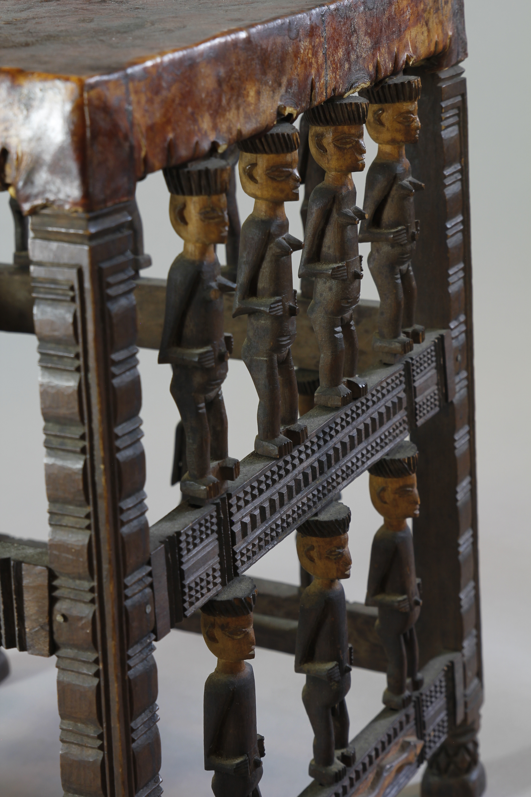 FINE STOOL WITH FIGURATIVE SUPPORTS. CHOKWE, ANGOLA