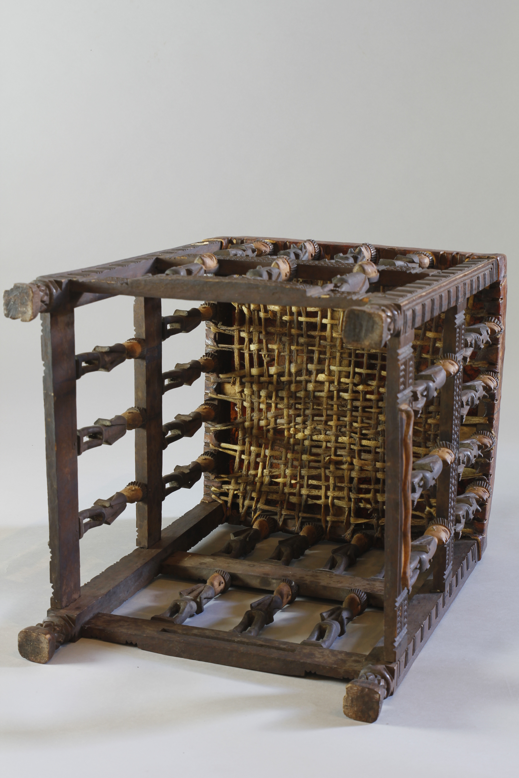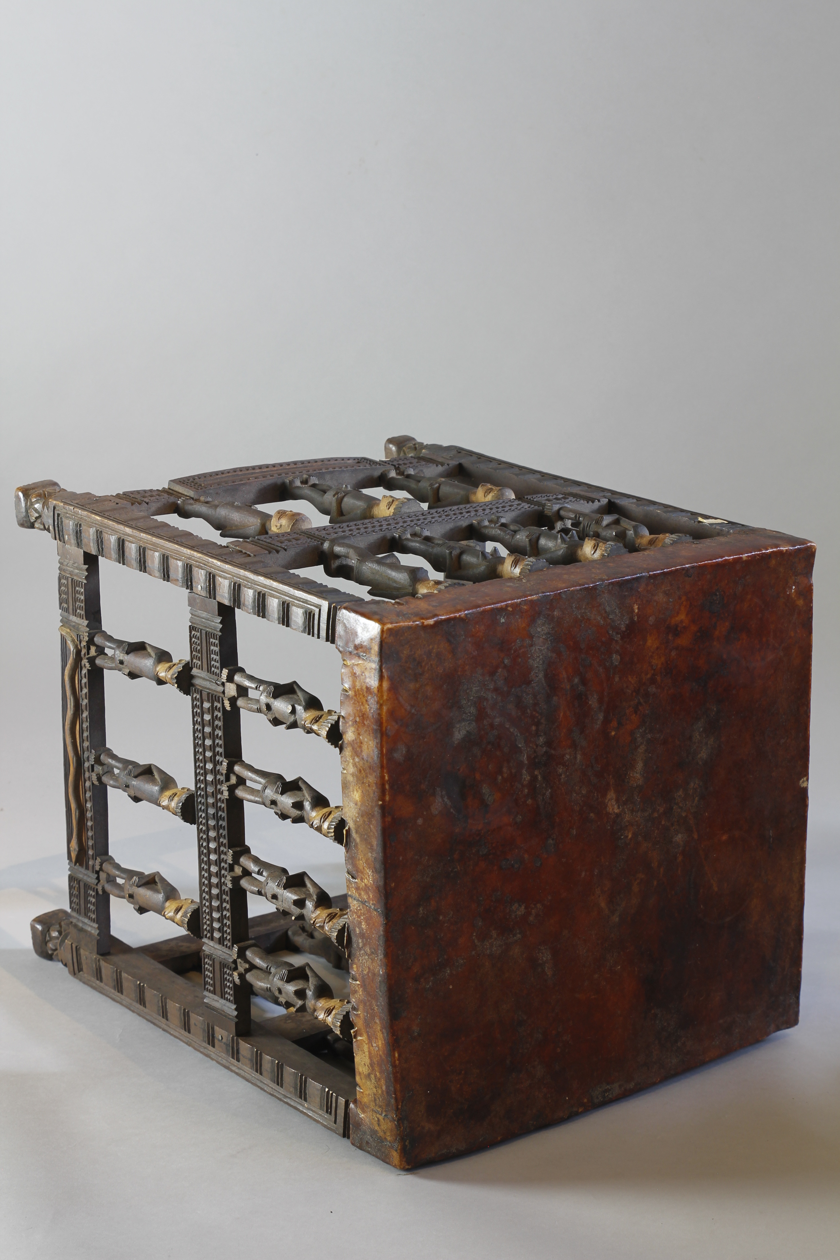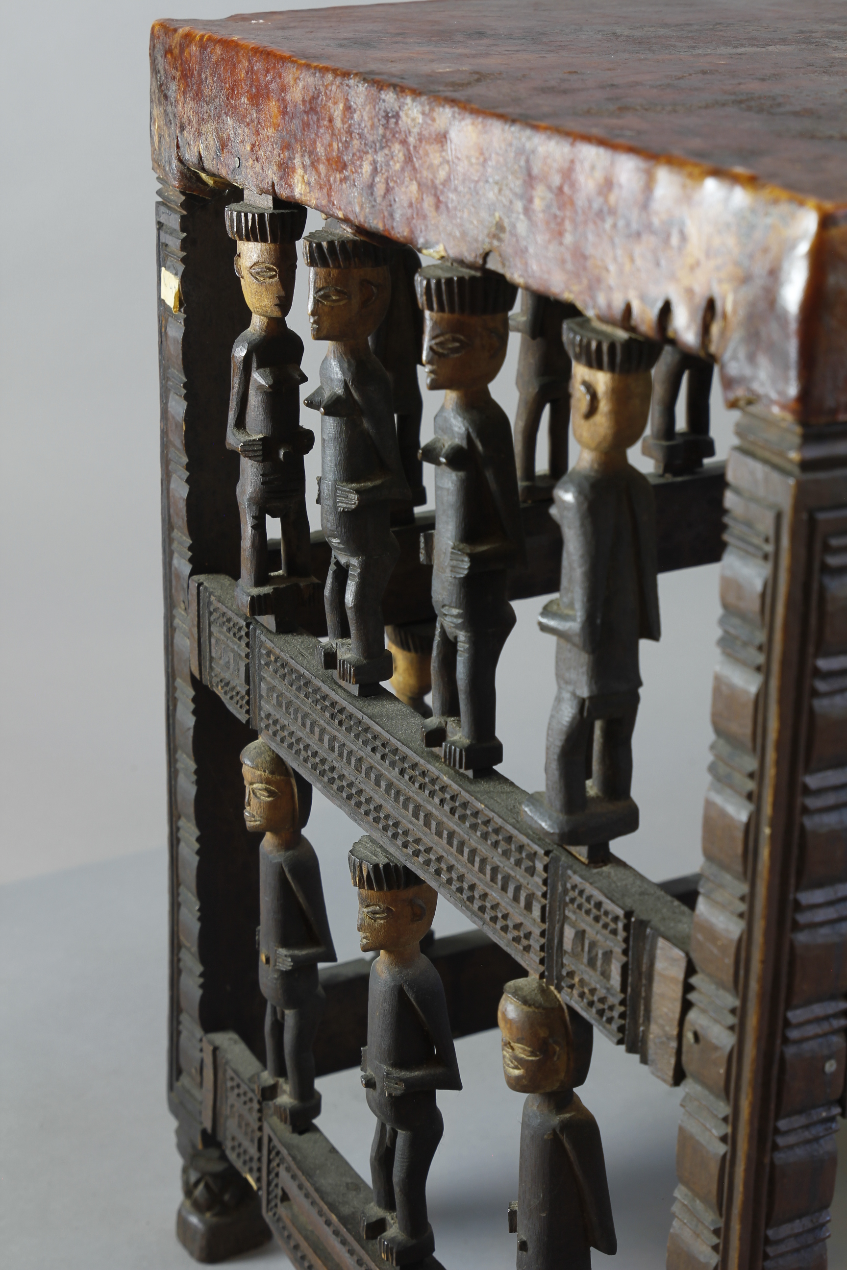 FINE STOOL WITH FIGURATIVE SUPPORTS. CHOKWE, ANGOLA