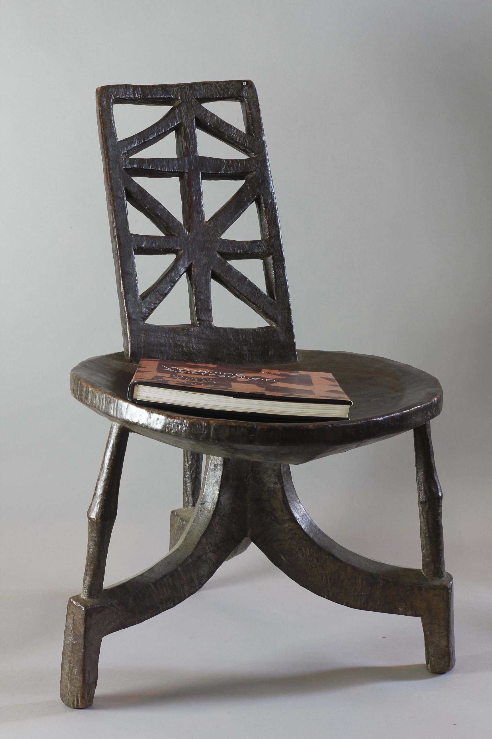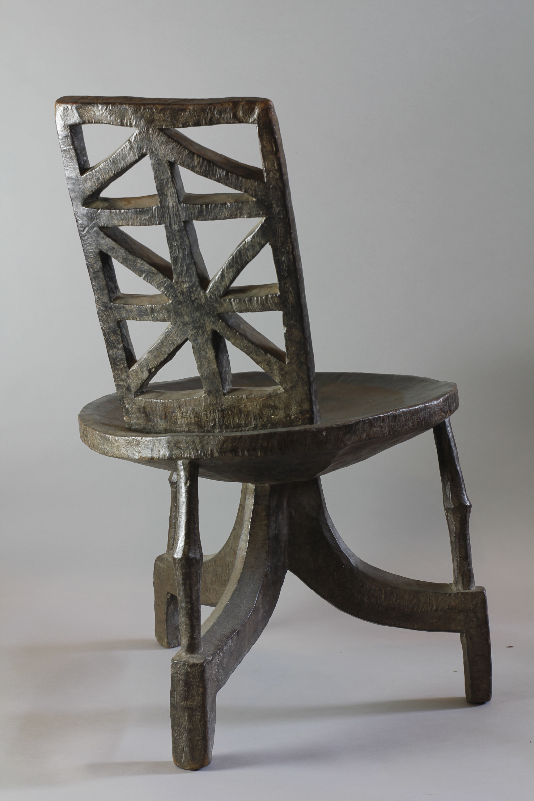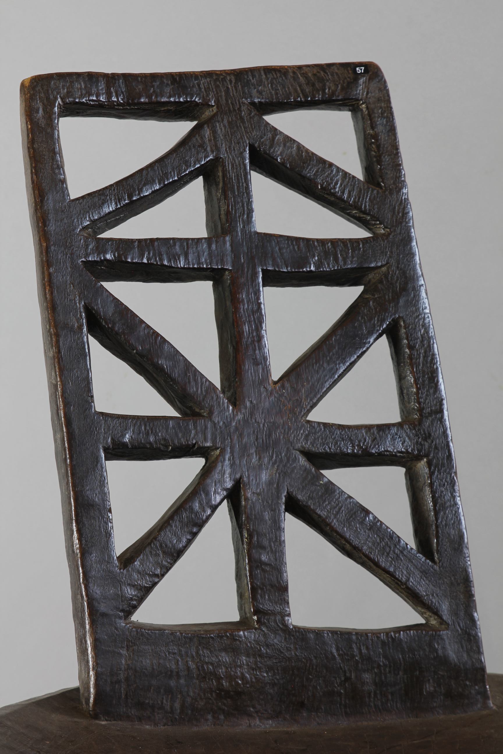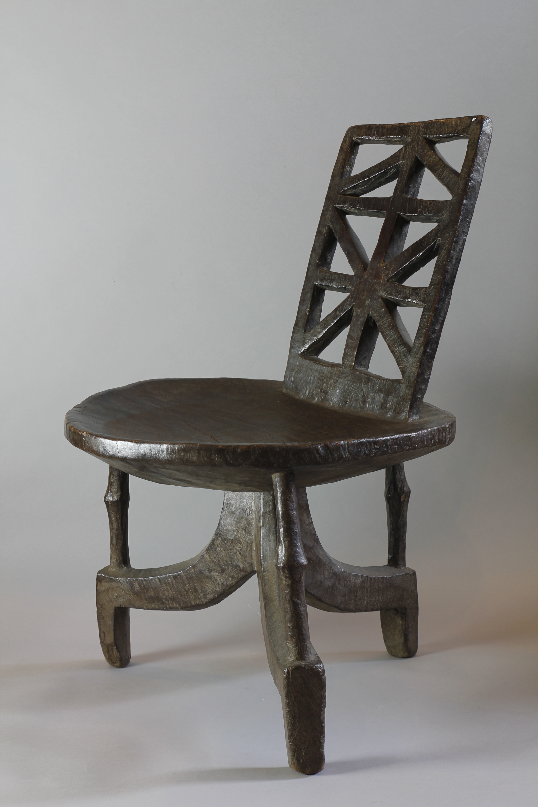 In terms of size alone it is hard to find Ethiopian chairs in this impressive size. The huge circular seat with a worn and rippled surface is supported by three slightly curved upright supports. The cut-out cross formation back support (typical with chairs from this region) reclines backwards making the chair comfortable to sit on. Once carved from one huge block of wood this in itself is a testament to this chairs age and importance.