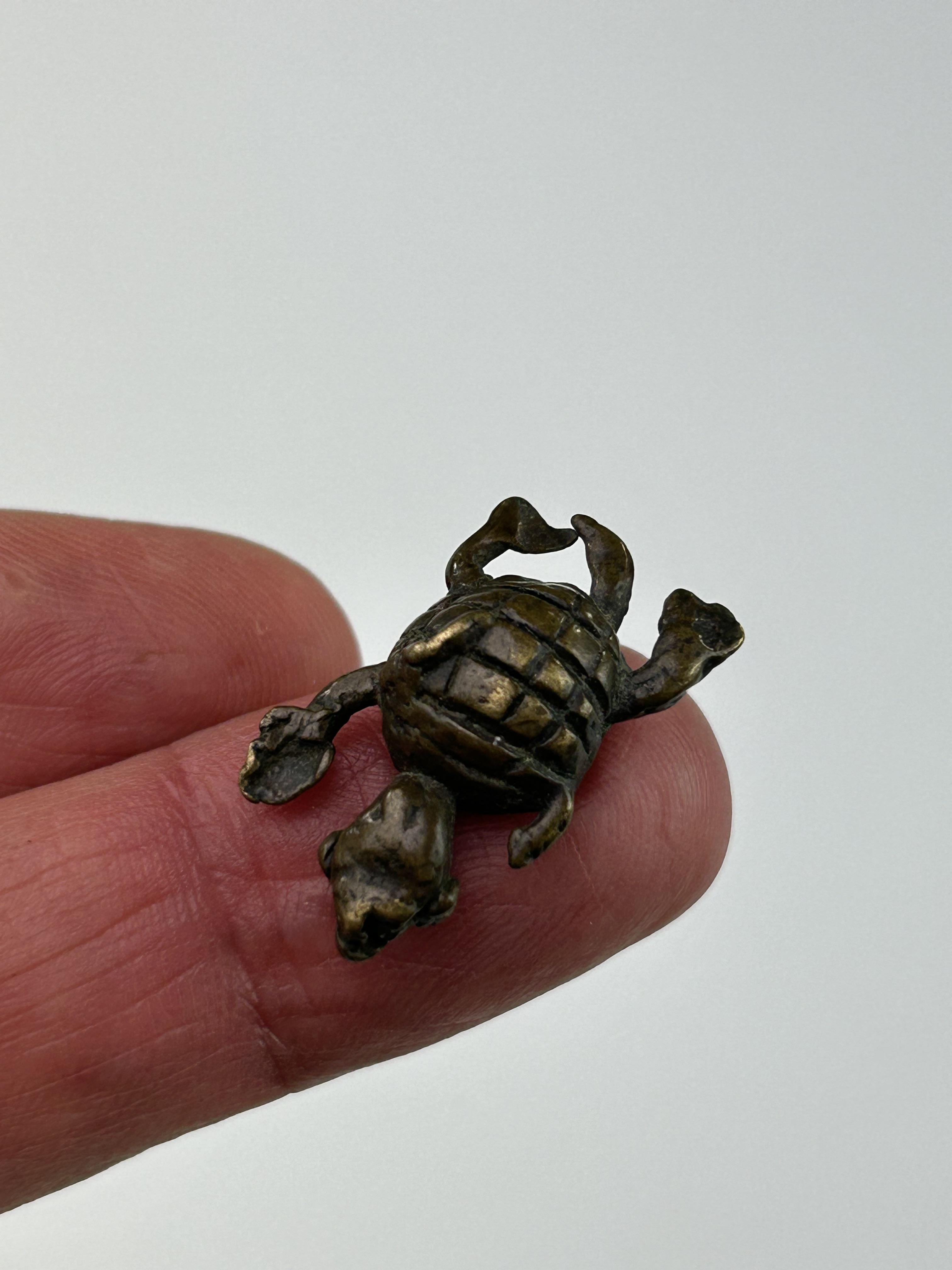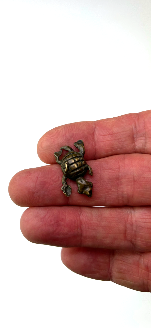 A wonderfully cast miniature Akan gold weight of a tiny tortoise.