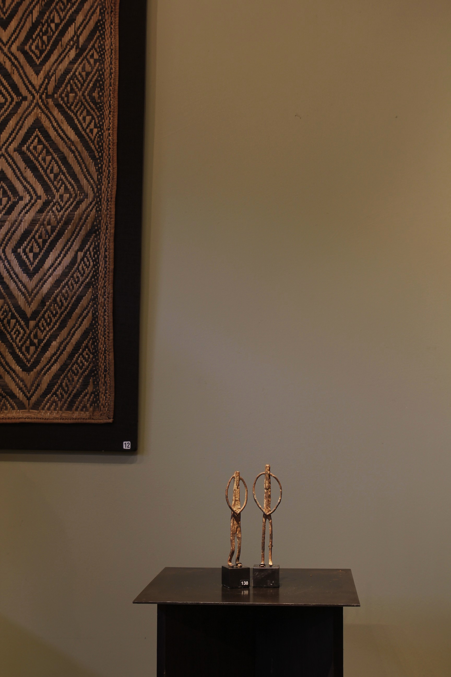 A pair of small finely forged Gan or Lobi iron figures each with a deep encrusted surface.