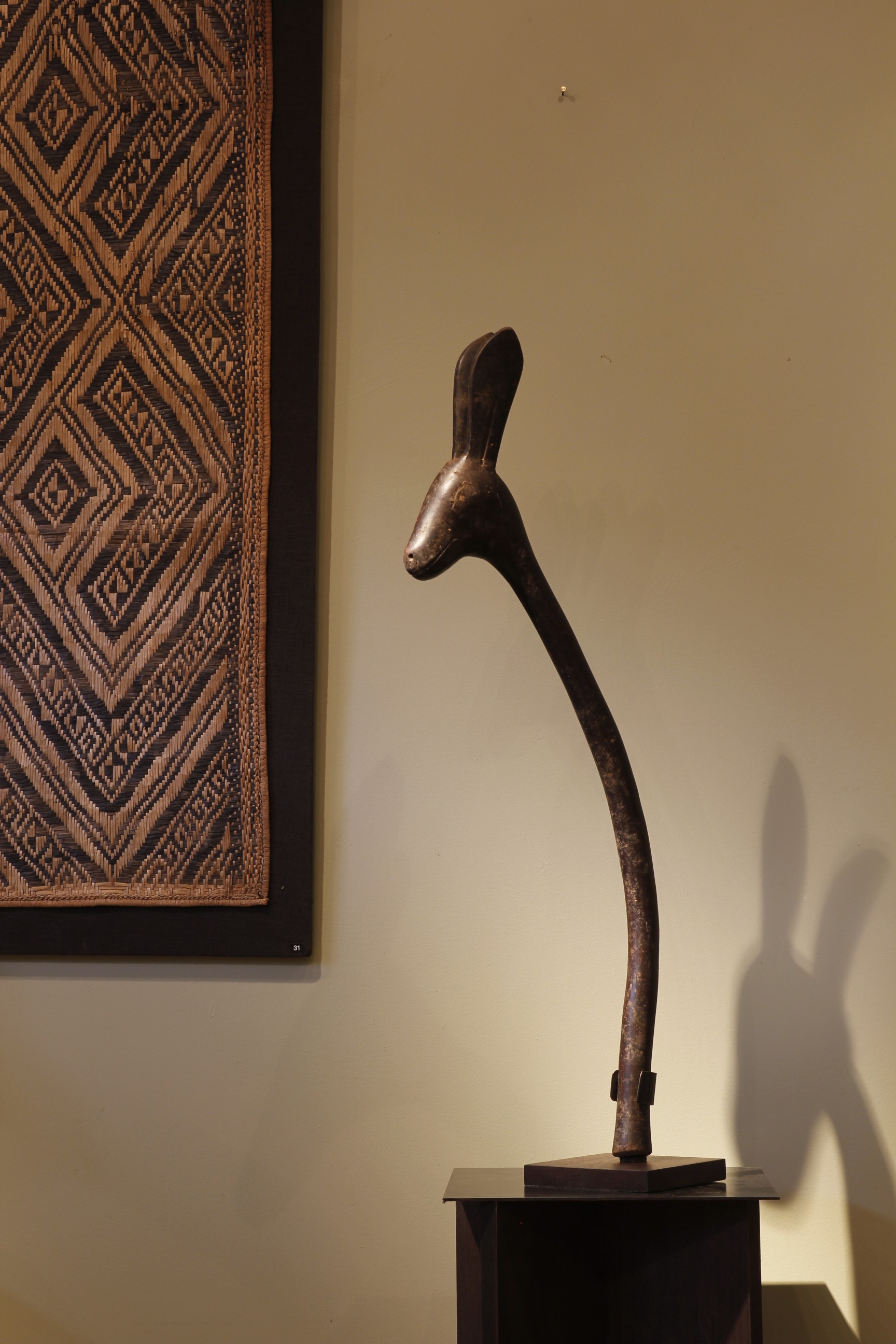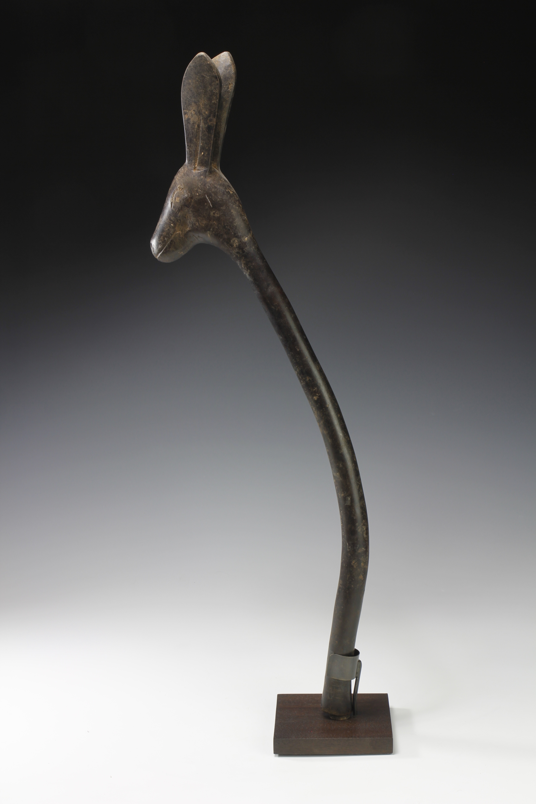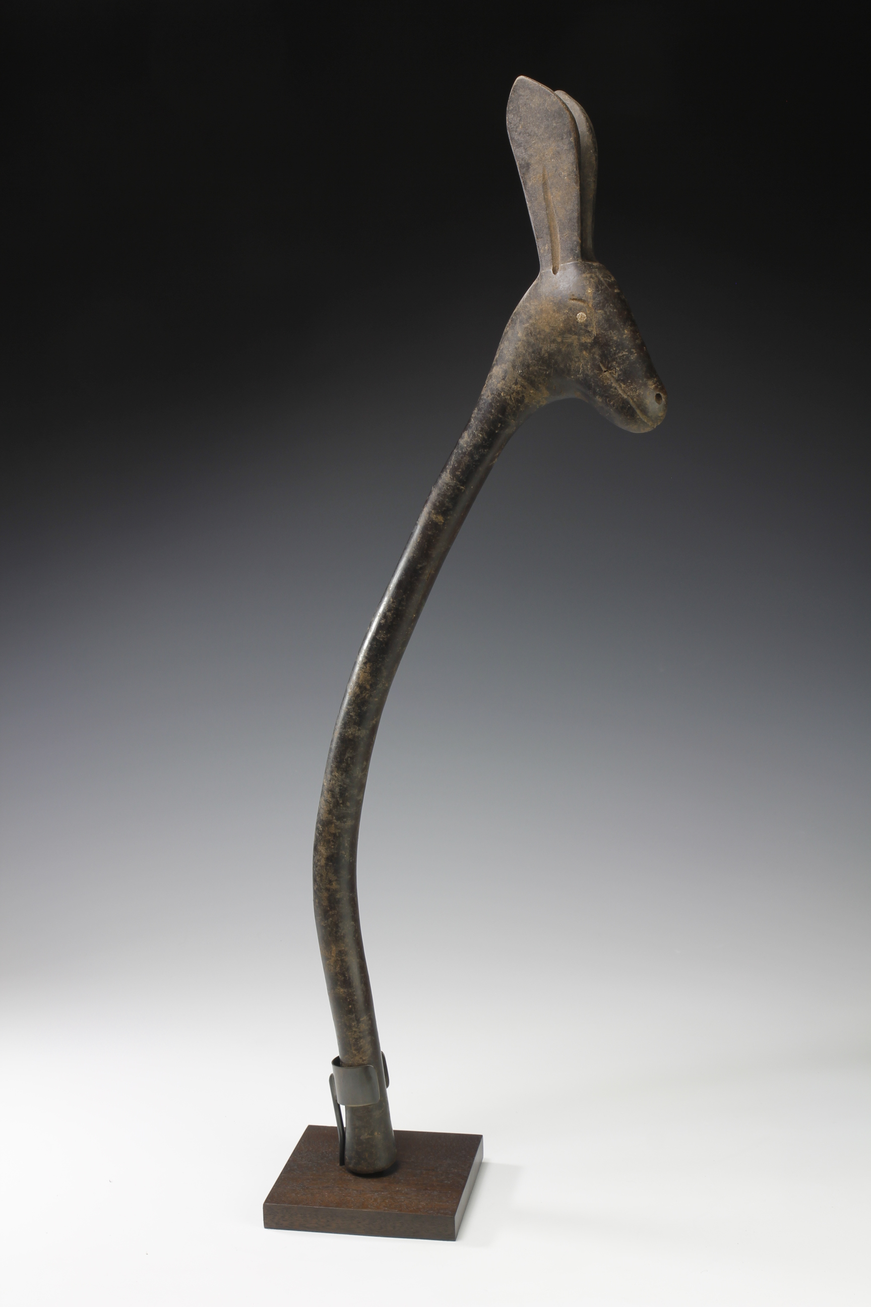 Fashioned from the natural form of a tree branch, the head of the staff captures the character of a animal with long ears likely a wild rabbit or gazelle. Staffs like this were carried with the animal head resting on the shoulder by elders of the Hehe and Gogo cultures of central Tanzania. The staff has a deep and glossy patina.