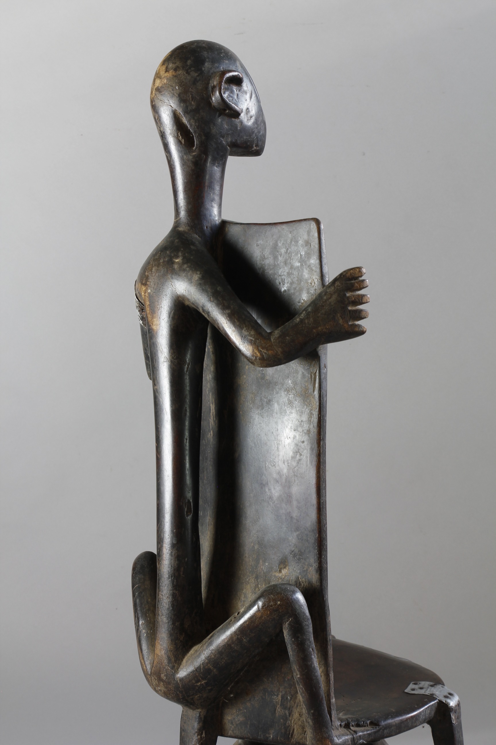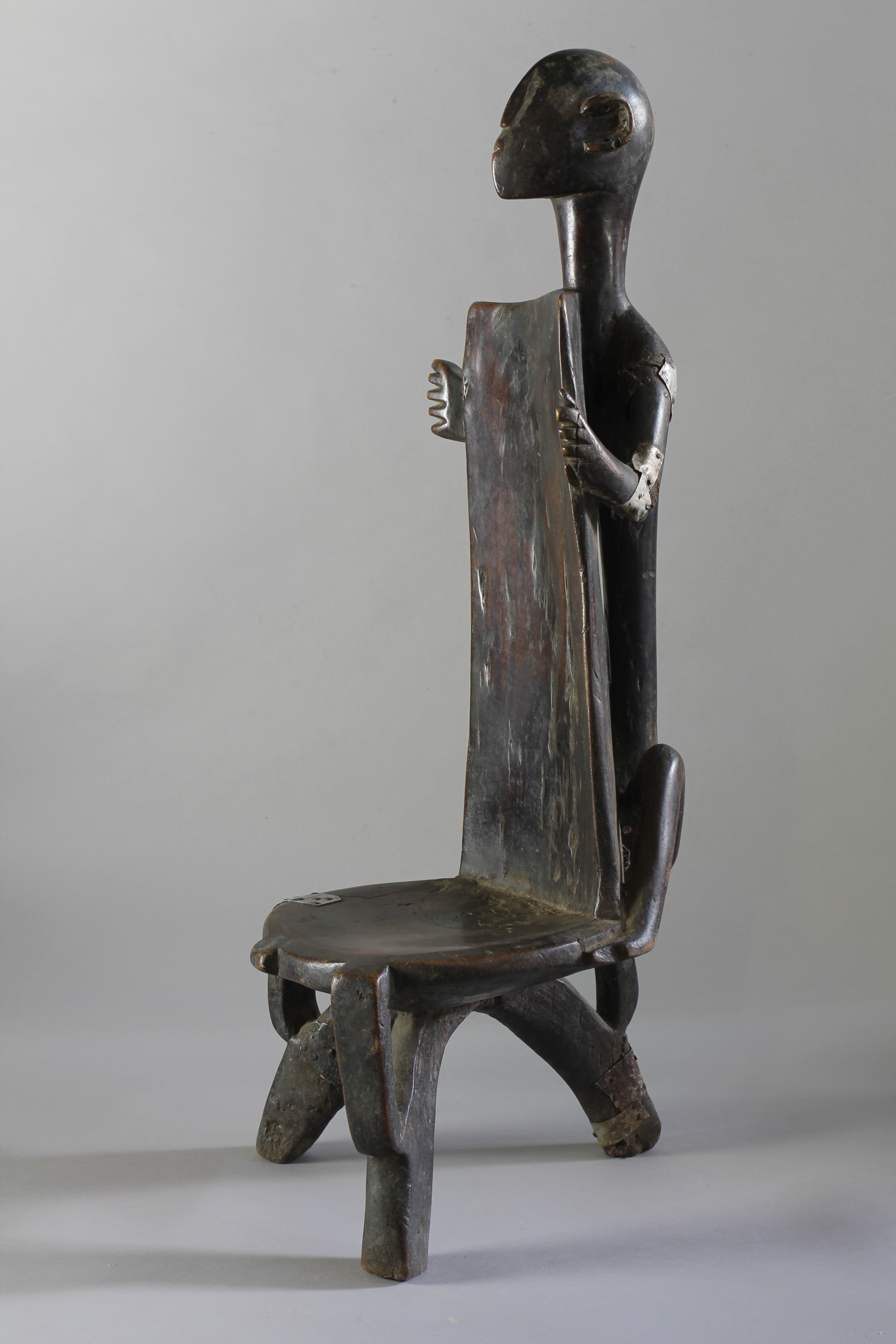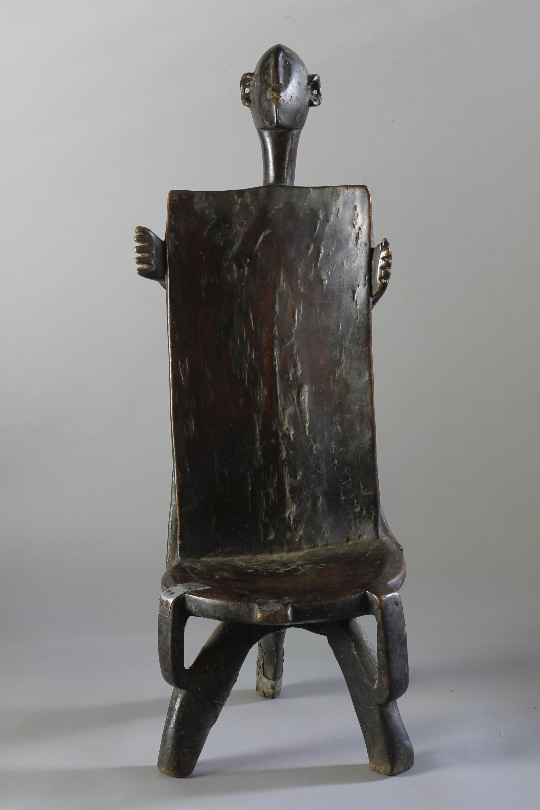 This fine example of a chieftain's throne was kept as an important symbol of rank, power and status by Nyamwezi chiefs of Central and Western Tanzania. The all over surface patina is deep, rich and worn. Traditional restorations appear to the curved legs and to both of the arms.