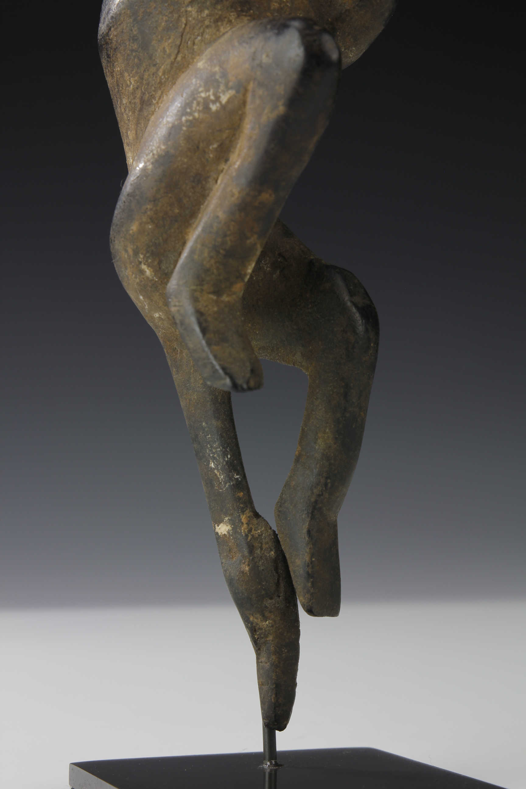 A cleverly sculptured piece with a lot of character and presence, showing obvious signs of traditional use. The surface patina is oily and worn in parts.